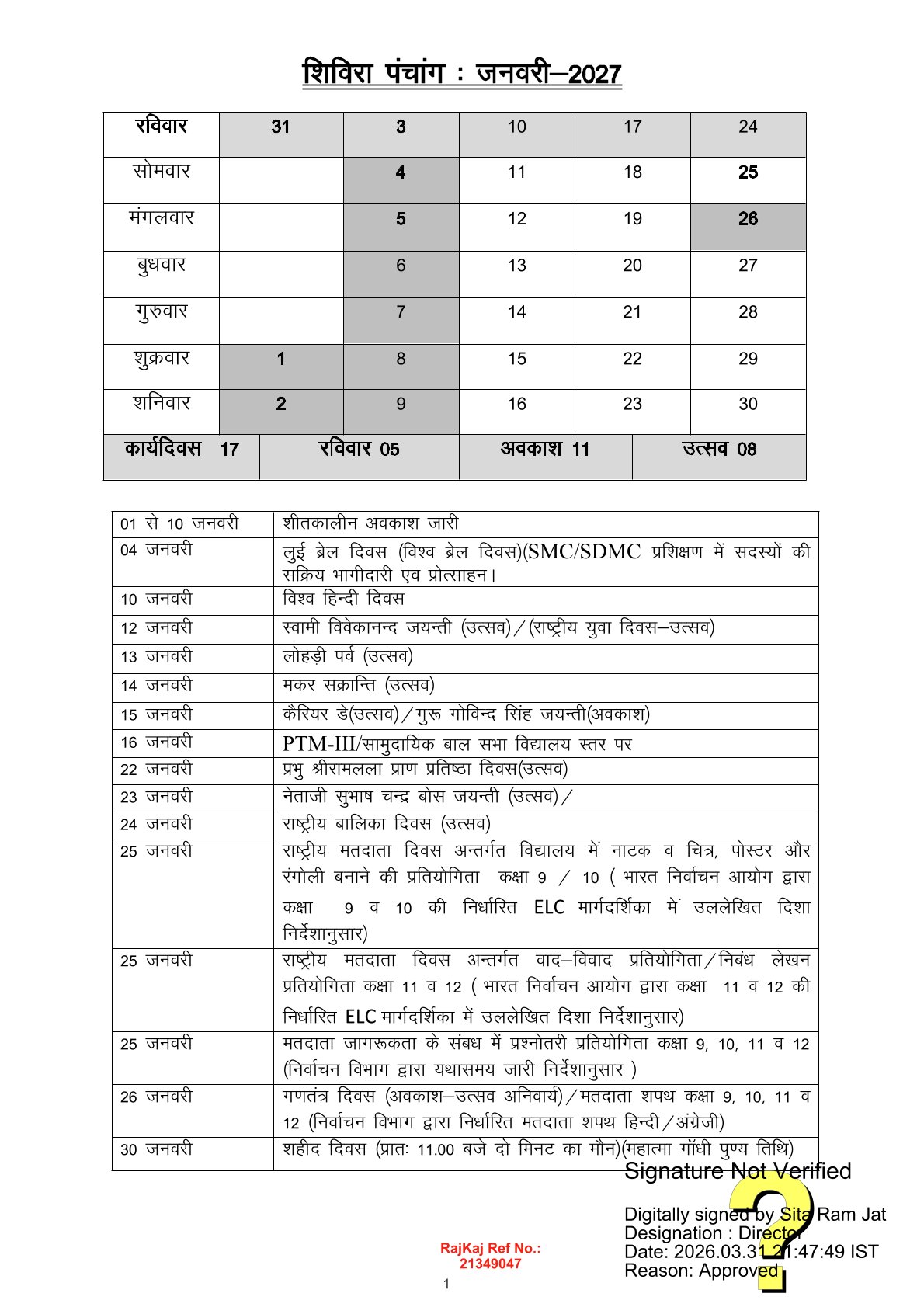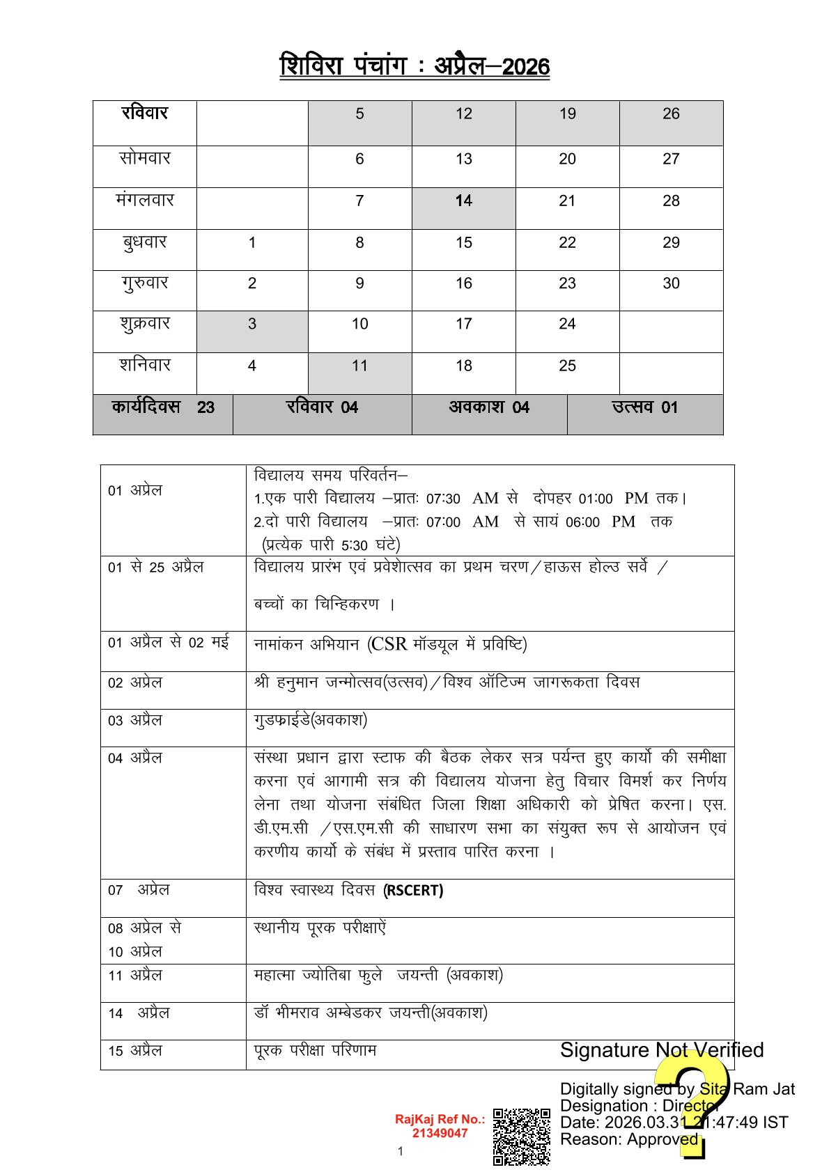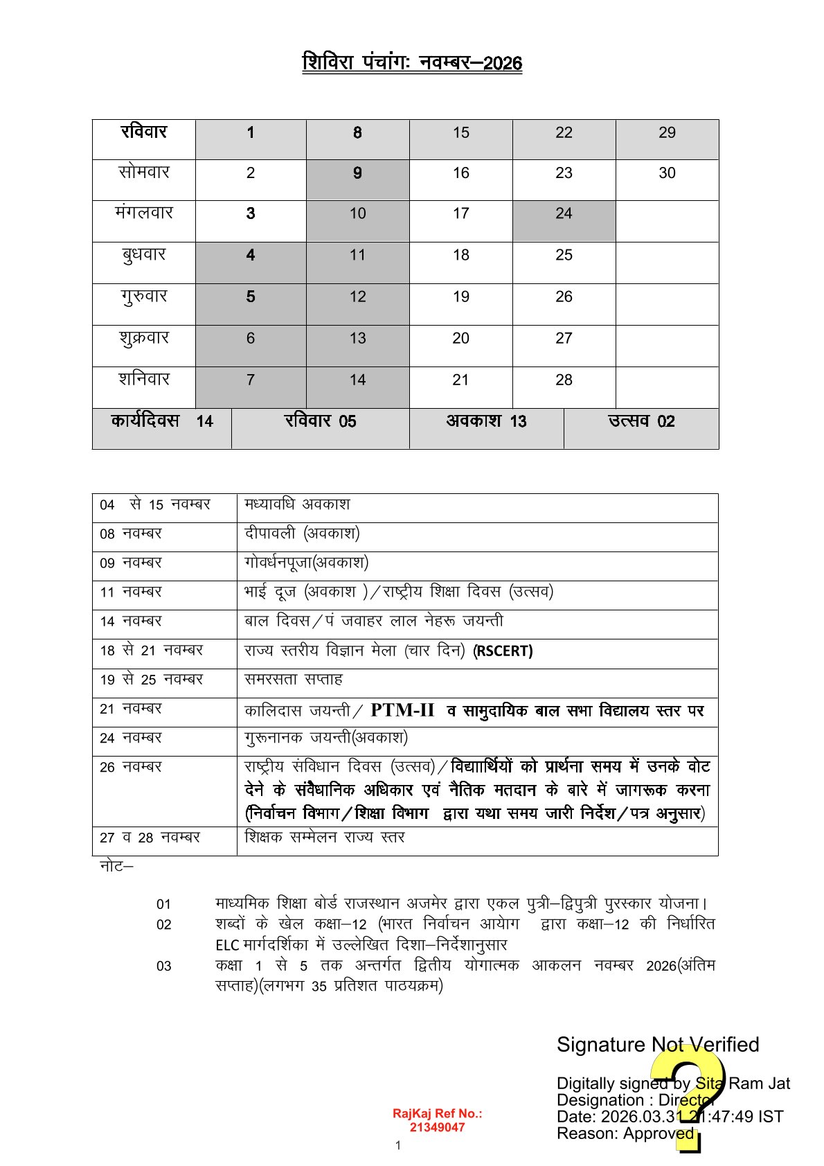 नोट: यह कैलेंडर शिविरा पंचांग 2026-27 के सामान्य दिशा-निर्देशों पर आधारित एक डिजिटल संस्करण है। किसी भी विवाद या राजकीय अवकाश में परिवर्तन की स्थिति में शिक्षा विभाग द्वारा जारी मूल आधिकारिक आदेश (Original Order) ही अंतिम व मान्य होगा।