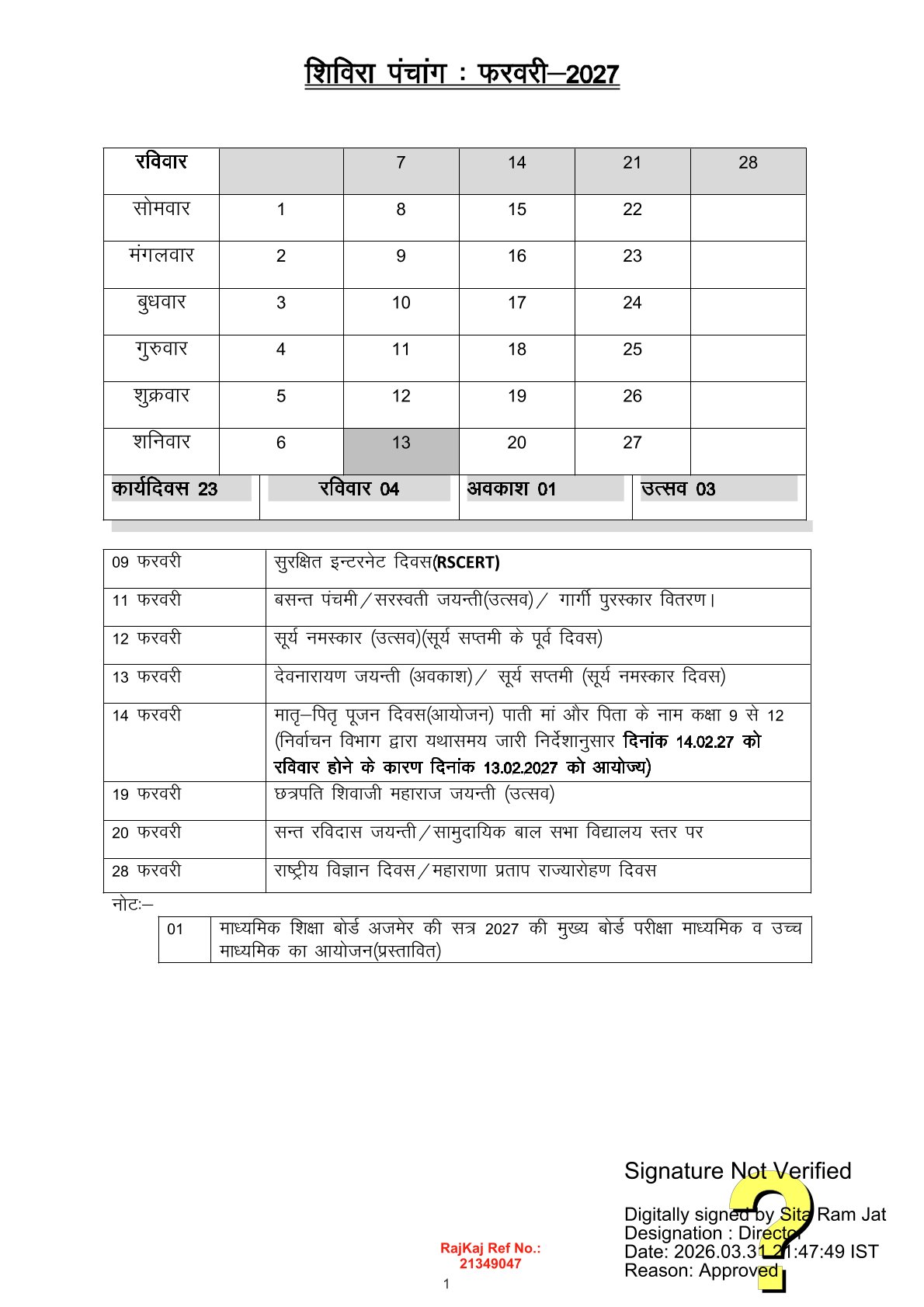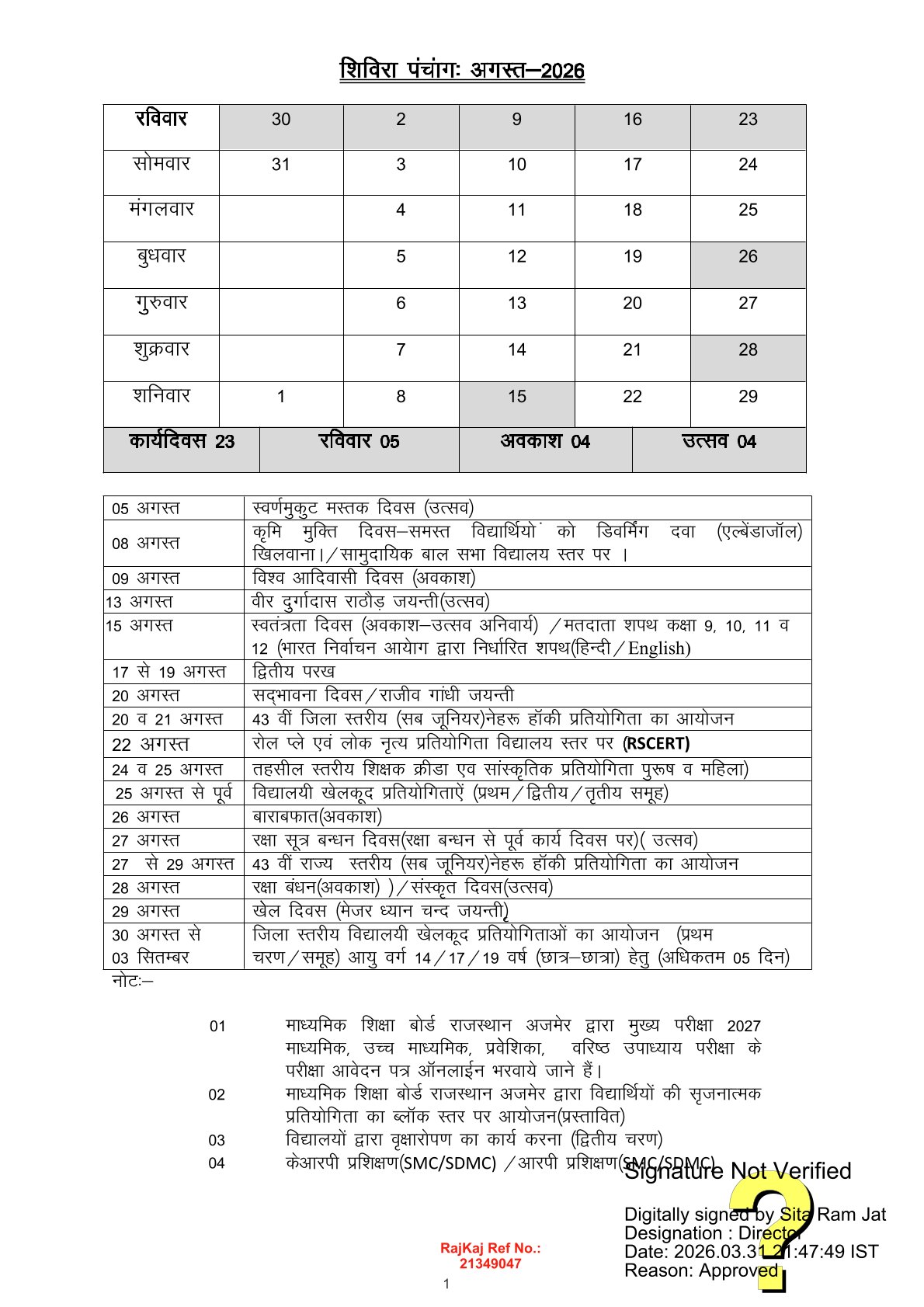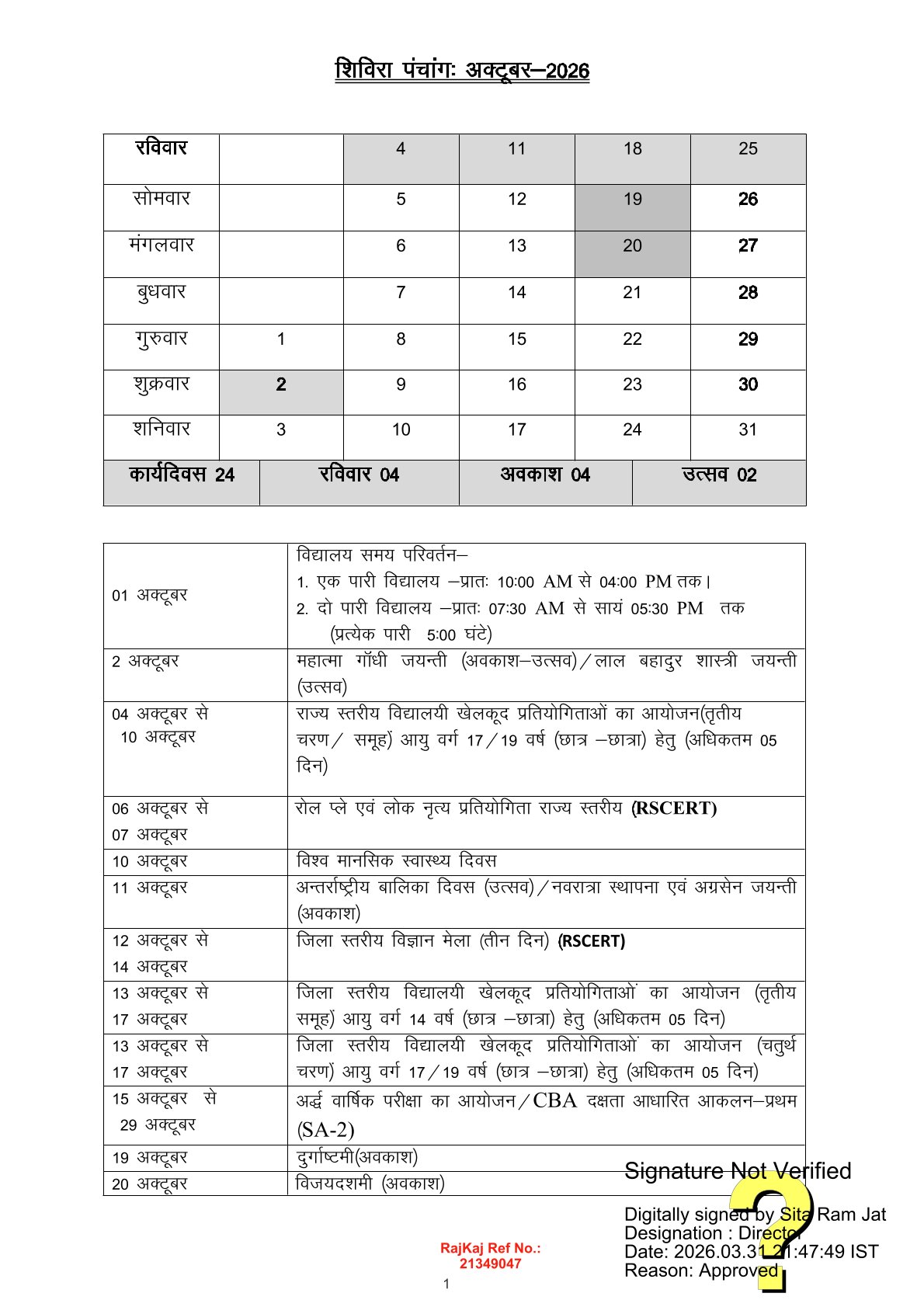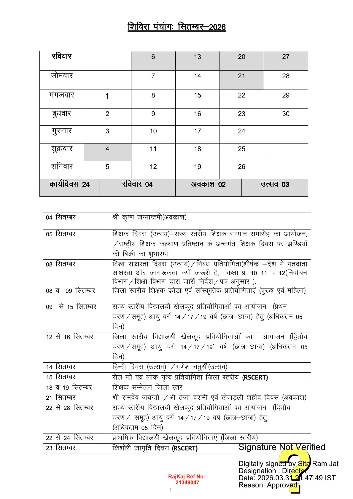 नोट: यह कैलेंडर शिविरा पंचांग 2026-27 के सामान्य दिशा-निर्देशों पर आधारित एक डिजिटल संस्करण है। किसी भी विवाद या राजकीय अवकाश में परिवर्तन की स्थिति में शिक्षा विभाग द्वारा जारी मूल आधिकारिक आदेश (Original Order) ही अंतिम व मान्य होगा।